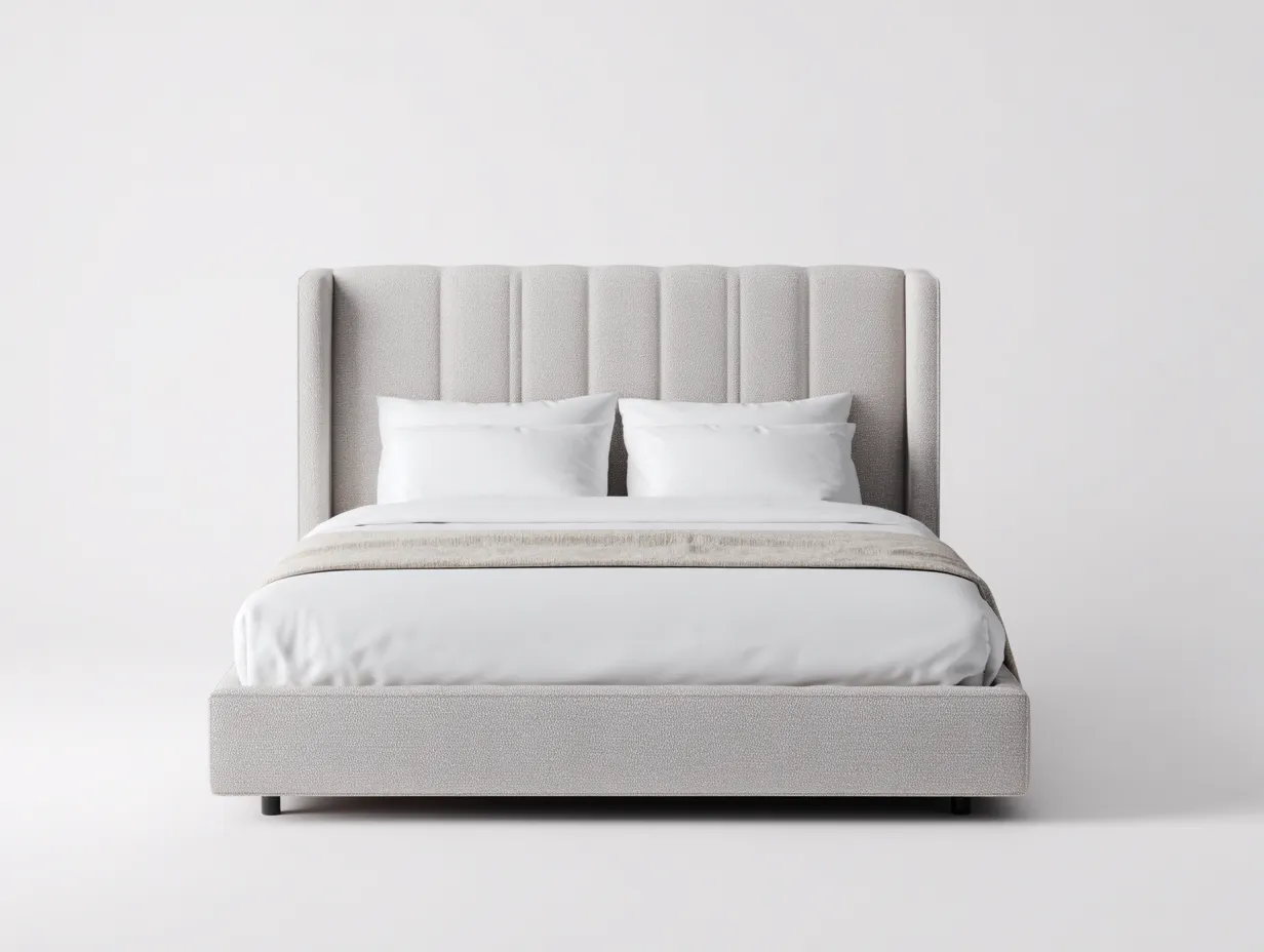Doppelbett-Textil-Holz-214x196x128 cm-Beige-Moderner Minimalismusstil