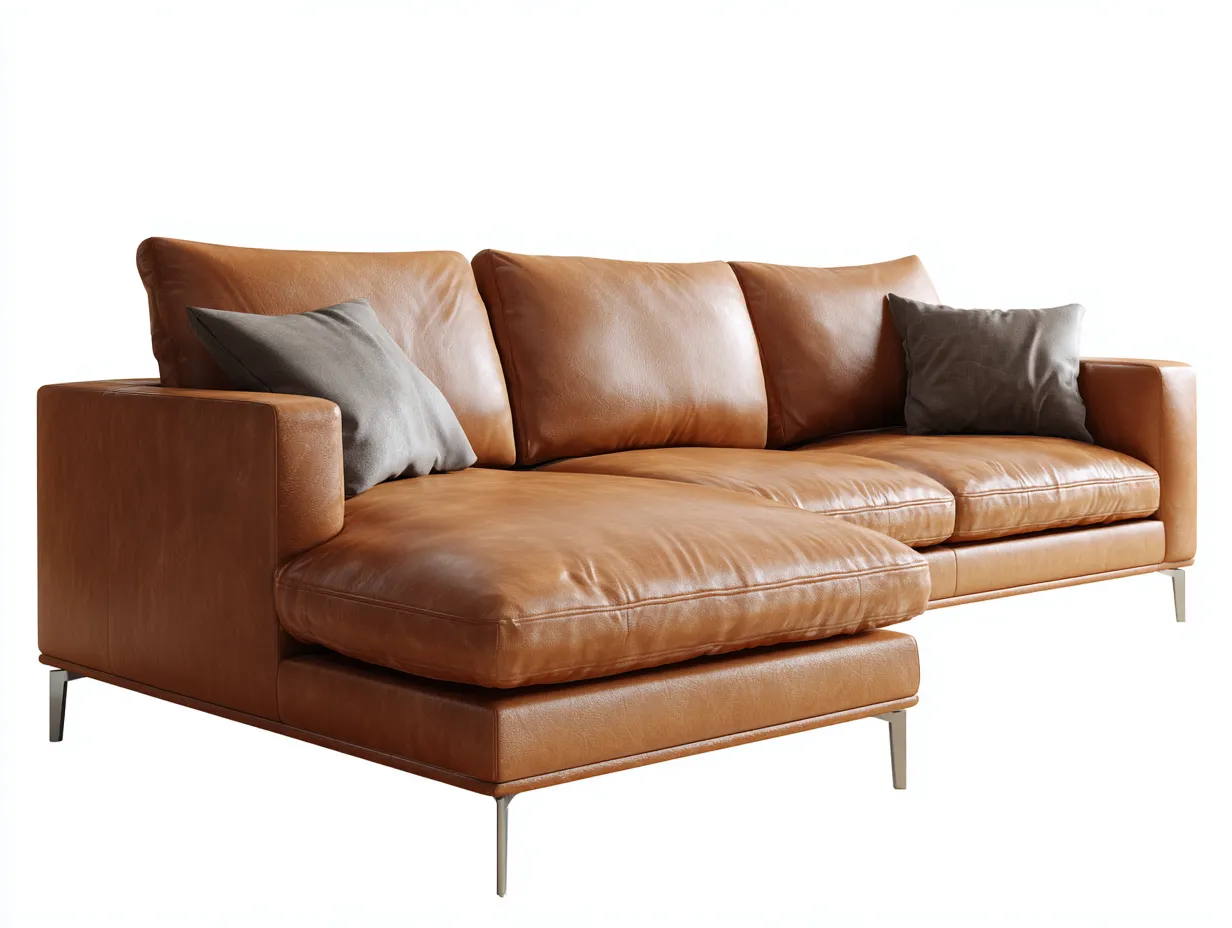 Ecksofa - Leder-Metall - 274x168x82 cm - Braun - Modern