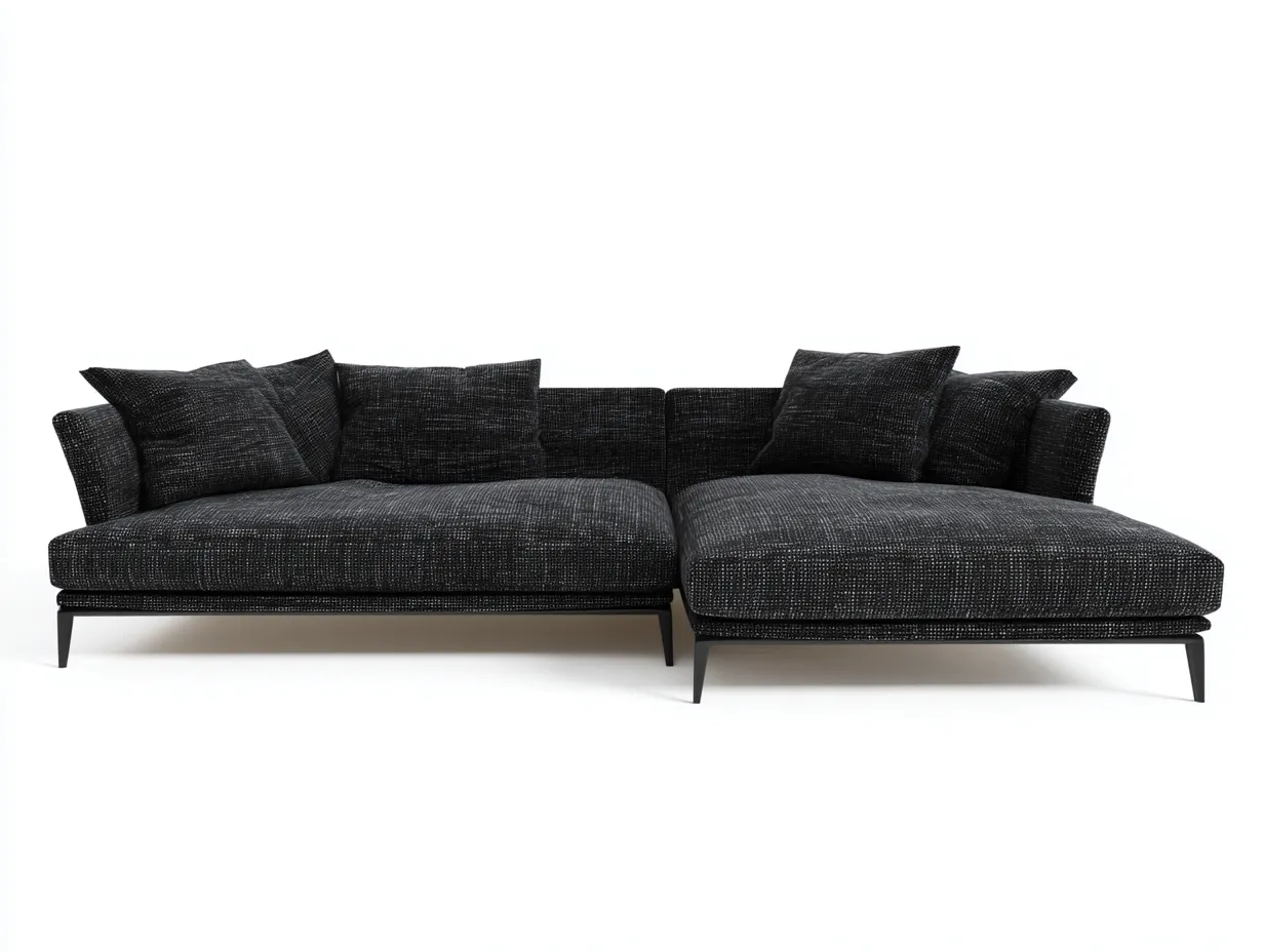 Ecksofa - Stoff-Metall-Holz - 298x172x80 cm - Schwarz - Modernes Wohnzimmerdesign